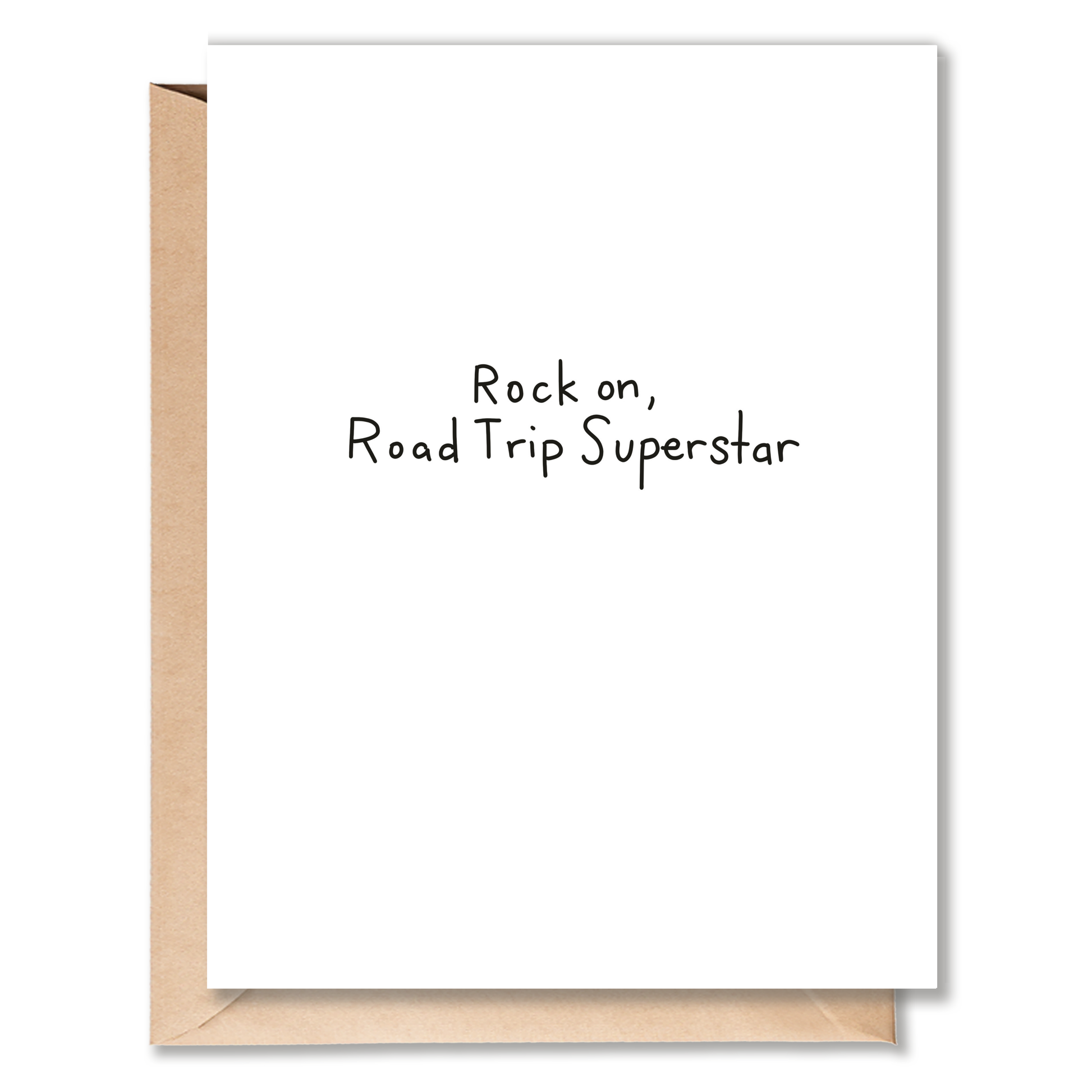 Printed on premium, eco-friendly cardstock with "Rock on, Road Trip Superstar" on the inside
