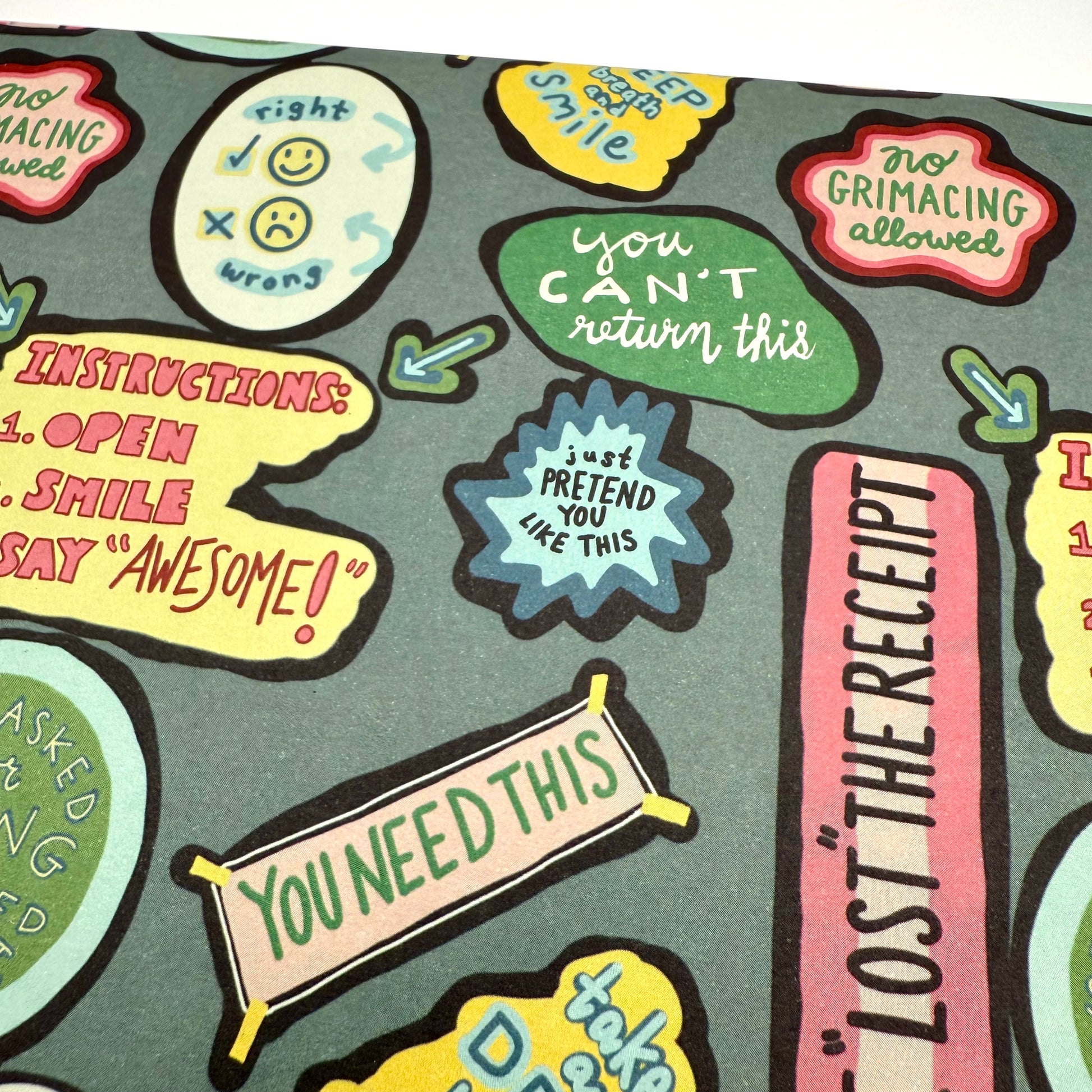 This wrapping paper is for those moments when you know they’ll try to return the gift, even though they desperately need it. A playful but firm reminder that sometimes, the best gifts aren’t the ones they want—they’re the ones they should just accept and wear already.